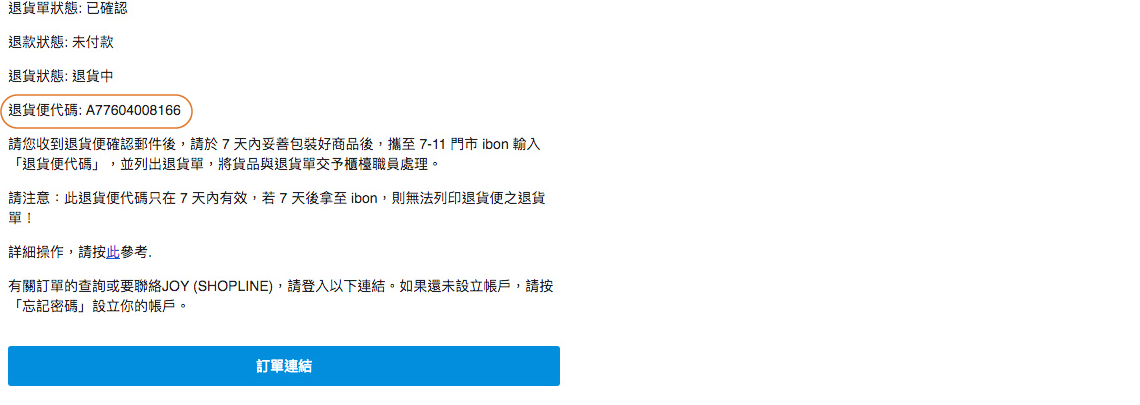 3 . 記下退貨便代碼,例:A77604008166