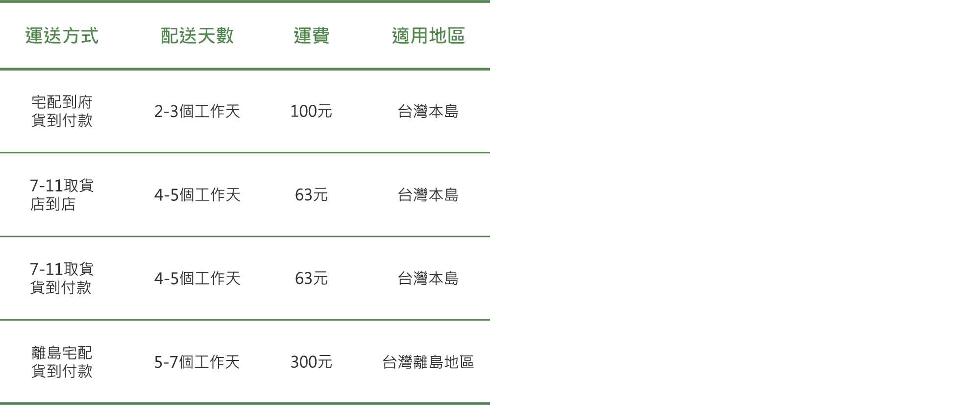 ◆ 若遇特殊情況 (颱風、地震、水災等) 無法配送,將擇日再行運送,遇特定活動或節慶假日,貨運出貨量增加,可能導致商品延遲送達,請見諒。