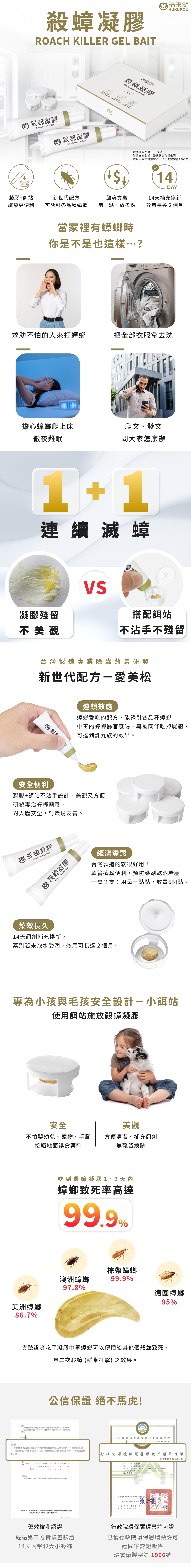 商品內含:殺蟑凝膠5g 2入、小餌站6入