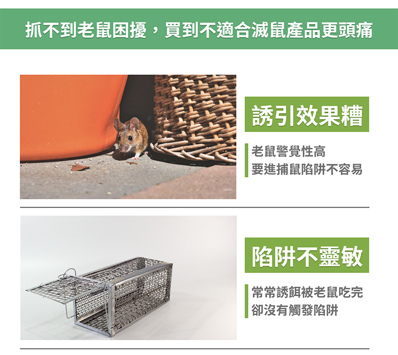組合內含:消滅老鼠誘餌10入*2包、新型捕鼠神器*1組