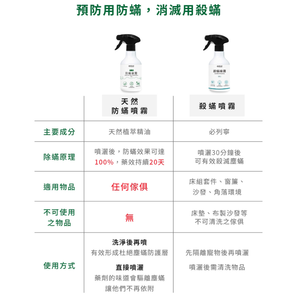 組合內含:天然防蟎噴霧500ml*1瓶 、殺蟎除蟎噴霧500ml*1瓶