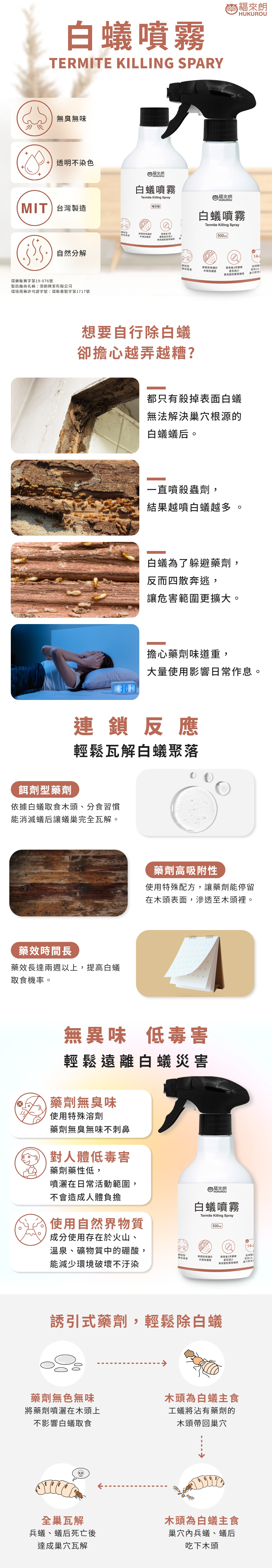 組合內含:白蟻噴霧500ml*1瓶、白蟻噴霧補充瓶500ml*2瓶