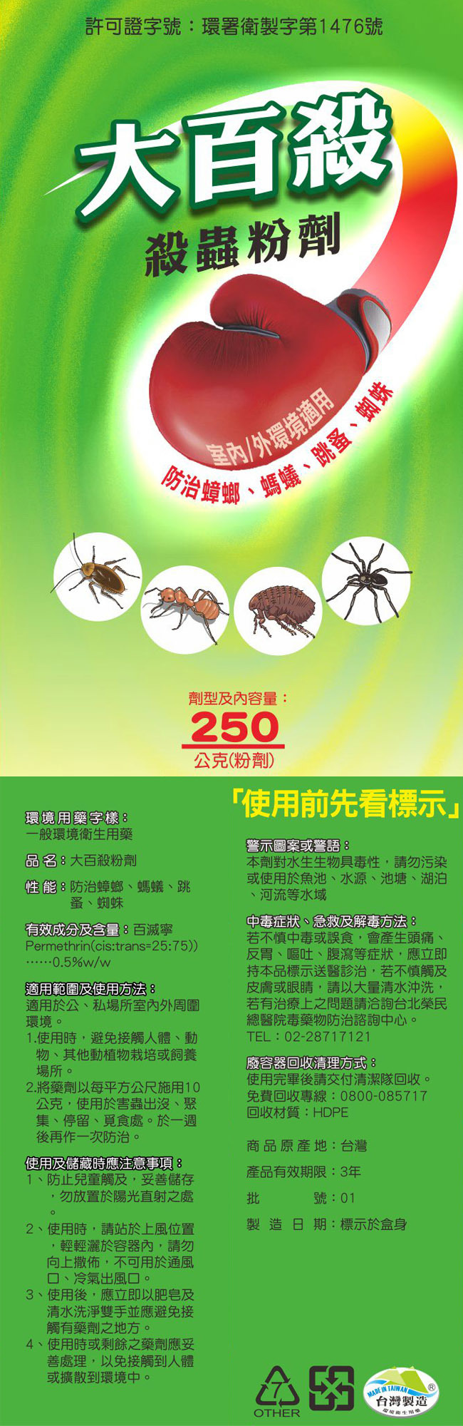 可防治:蟑螂、螞蟻、跳蚤、蜘蛛等常見害蟲